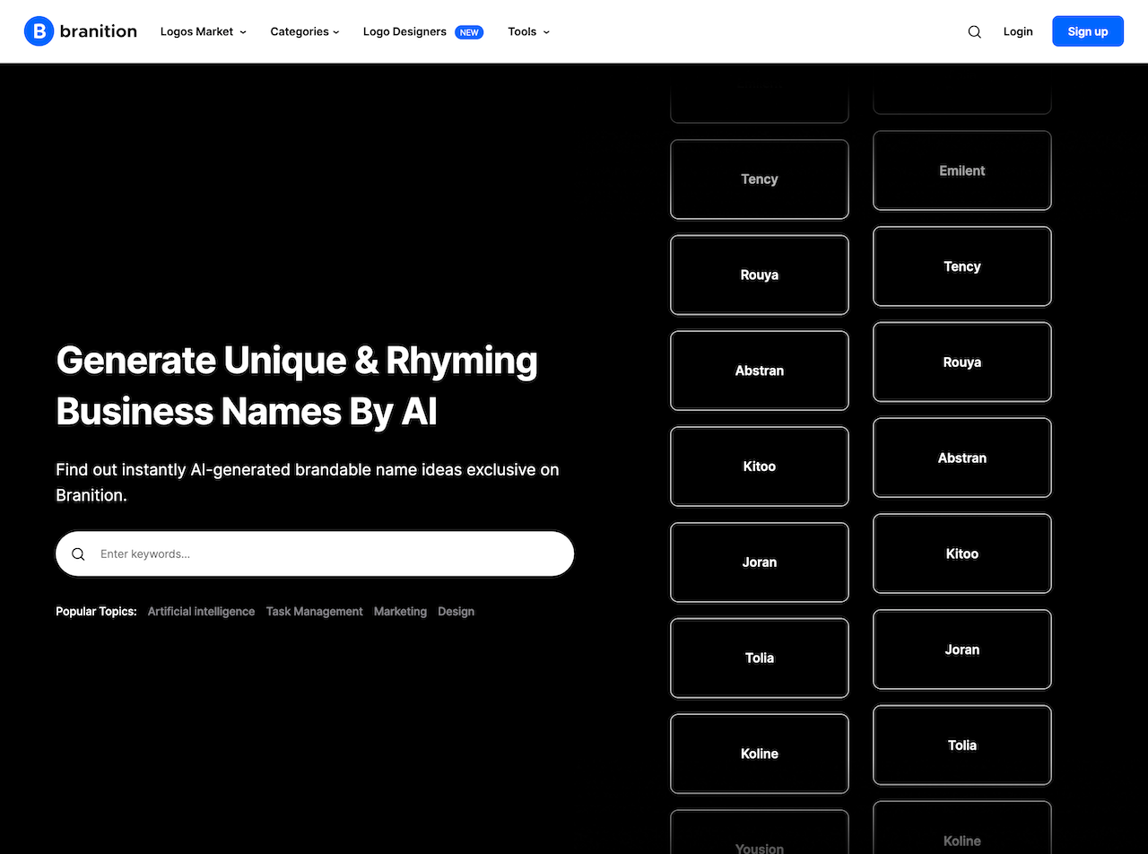 Compare Branition - Generate Unique & Rhyming Business Names By AI with Crossplag and jump into the preserved compare route.
