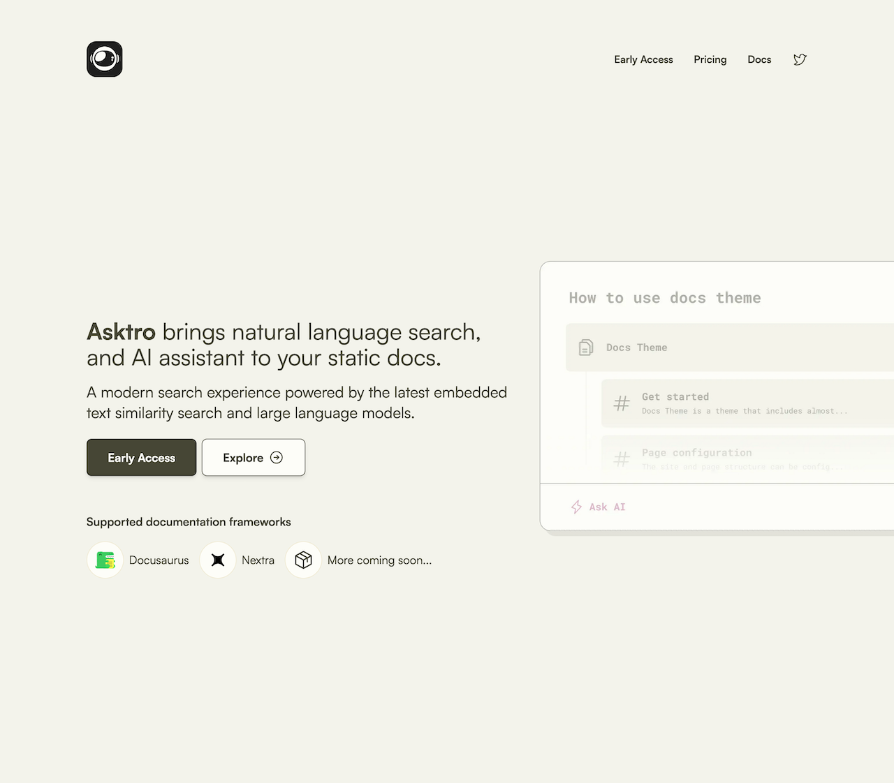 Asktro brings a dynamic, AI-enabled search experience to static documentation. It is powered by the latest embedded text similarity search and large language models, offering an advanced search capability for documents and content. For more information, you can visit their website
