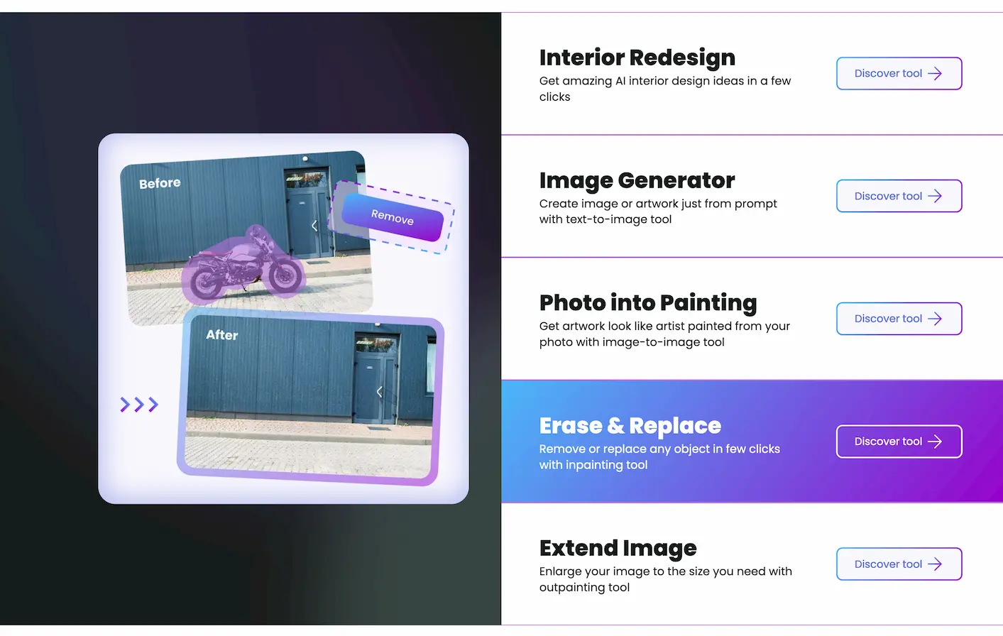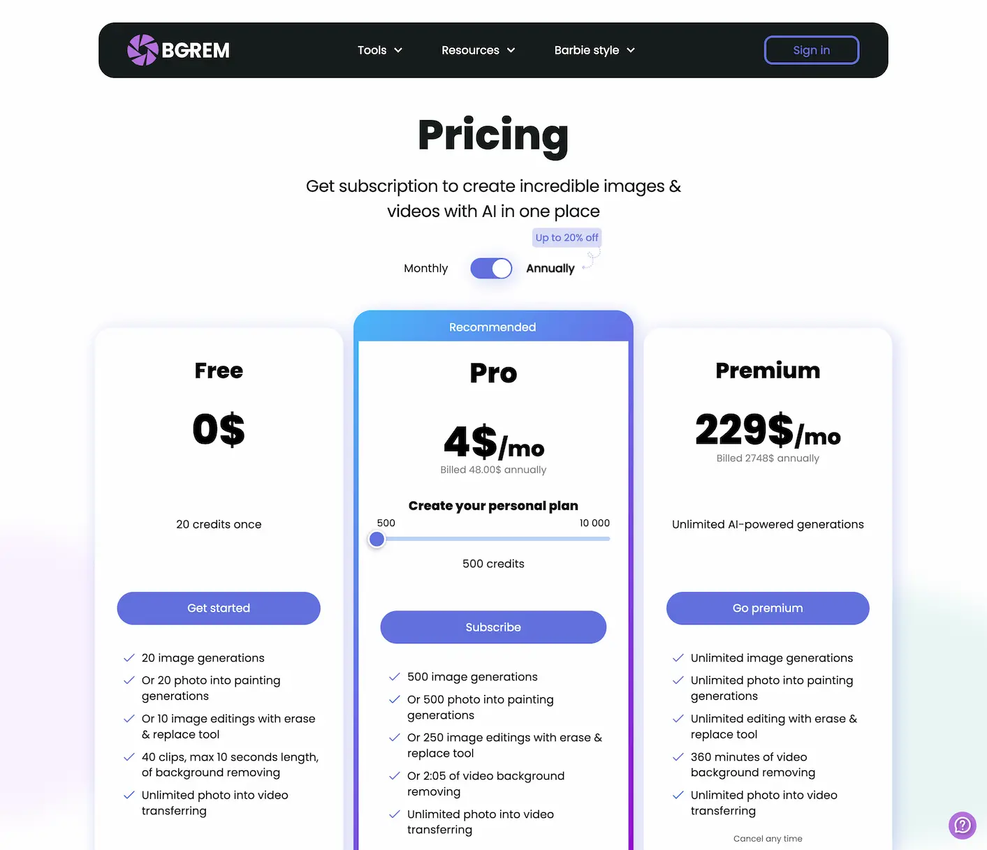 Compare BgRem: All-in-one image and video AI tools with Free plan with Freeflo- Jumpstart AI image creation with curated, beautiful and reusable styles for Midjourney, Clipdrop, Firefly or DALL-E and jump into the preserved compare route.