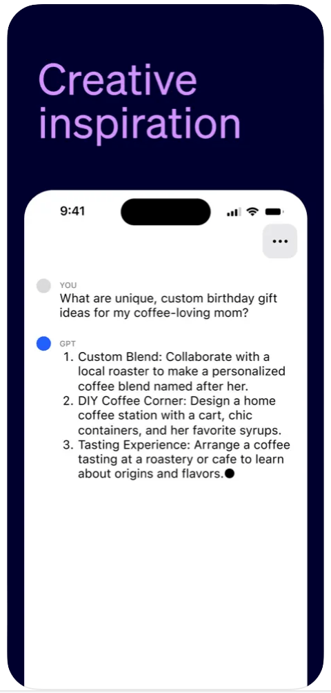 - Creative inspiration: Generate gift ideas, outline presentations, or write the perfect poem.