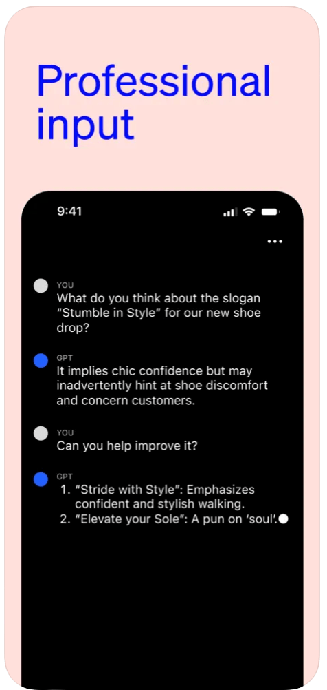 - Professional input: Boost productivity with idea feedback, note summarization, and technical topic assistance.