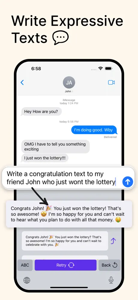 Upgrade your iPhone typing experience with KAI – KeyboardAI, the groundbreaking app that seamlessly integrates AI capabilities into your keyboard. Whether you’re a working professional, or navigating the dating scene, KAI’s AI-powered keyboard will fundamentally change the way you write and communicate!