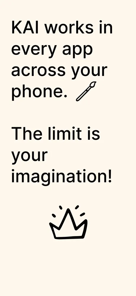 - Quick Access: KAI is available with a single tap on your keyboard anywhere in your iPhone. Always at your service.
