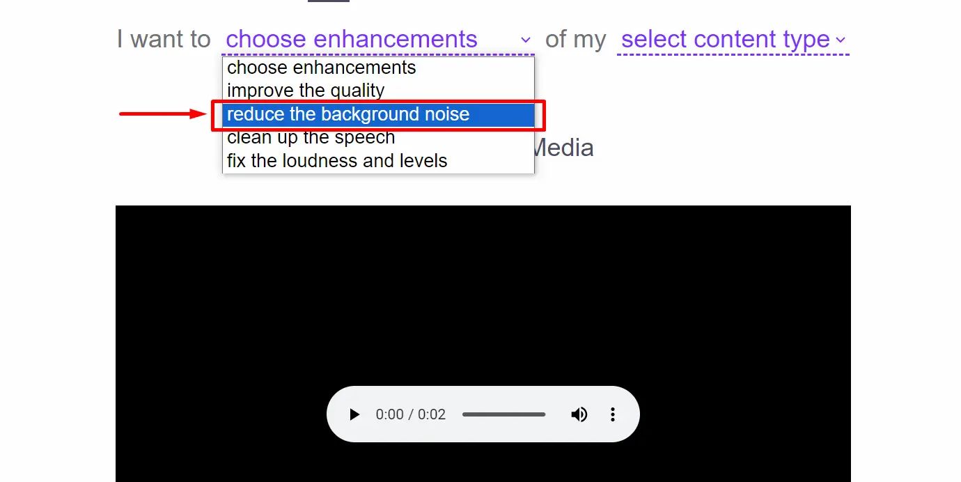 Next, select the enhancement type that suits your audio needs. Audioenhancer.ai offers options like "Noise Reduction," "Speech Enhancement," and more. For instance, if your podcast recording has unwanted background noise, choose "Noise Reduction" to clean it up and make your audio clearer.