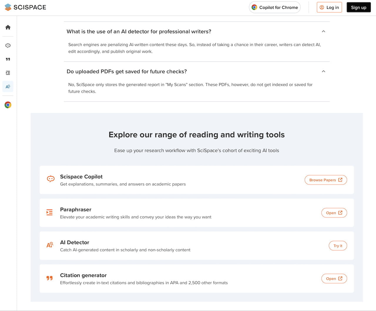 Not only that, SciSpace(https://typeset.io) also provides some other tools, as shown in the picture below, one of which is a Chrome plug-in, which is very easy to use. After installation, you can select text when browsing the web, make a summary or derive your own text.